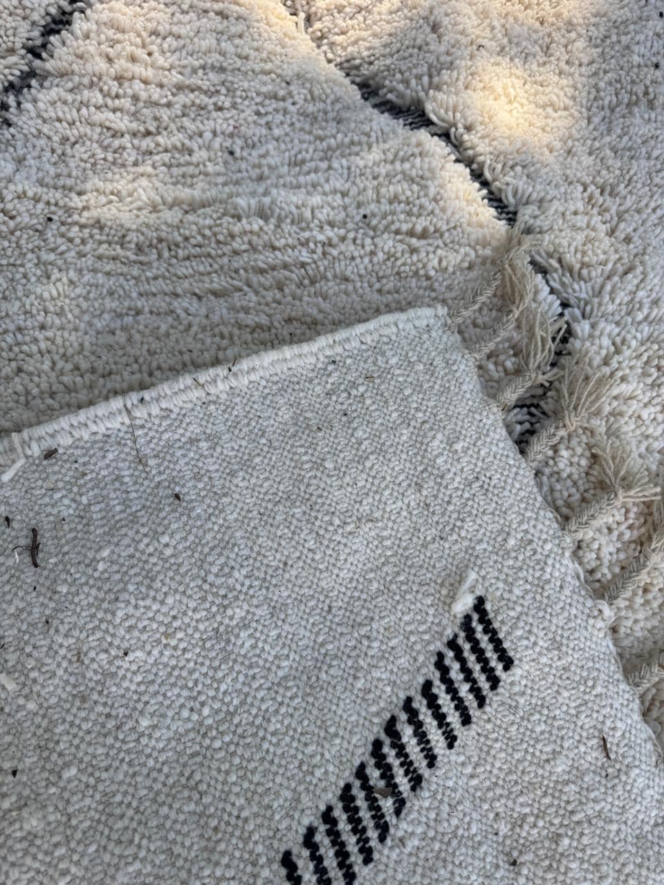 Beni Ourain Rugs – Classic ivory and black wool rugs, known for their thick pile and geometric simplicity.