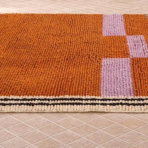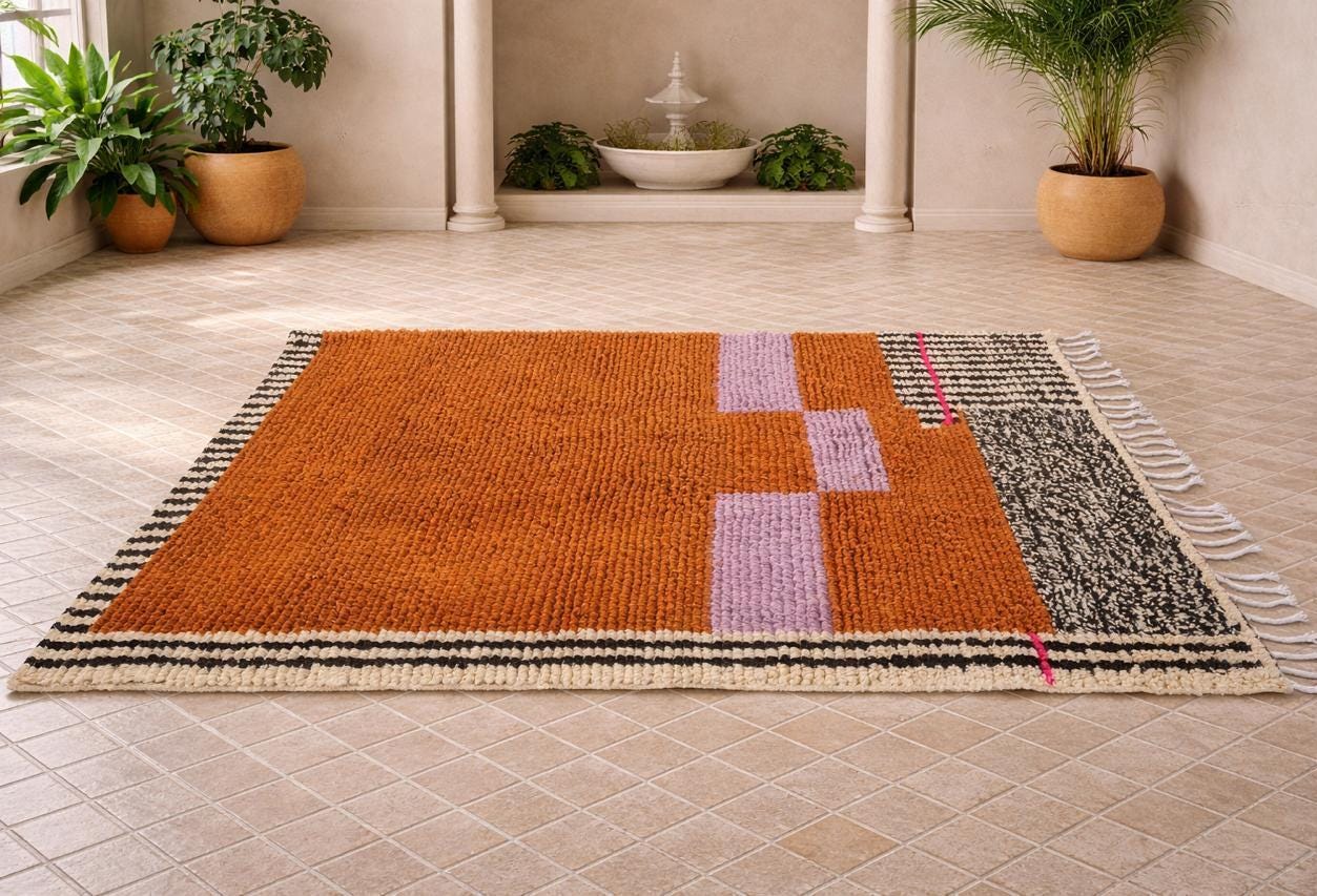 Lovely Moroccan orange handmade rug ;area rug ;Beni ourain Rug;Authentic Moroccan rug ;Berber carpet ;Genuine Wool rug,elevate u space