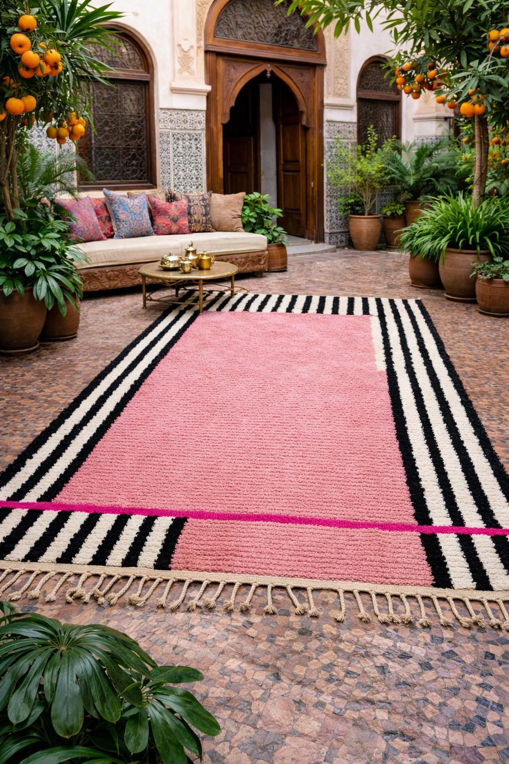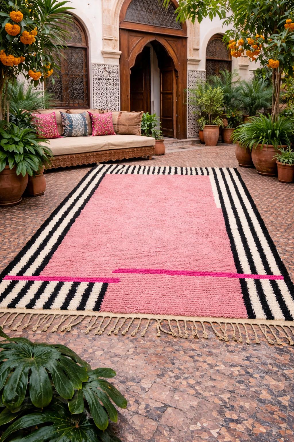 Boujad Rugs – Vintage-style rugs with bold pinks, reds, and oranges, offering vibrant personality.
