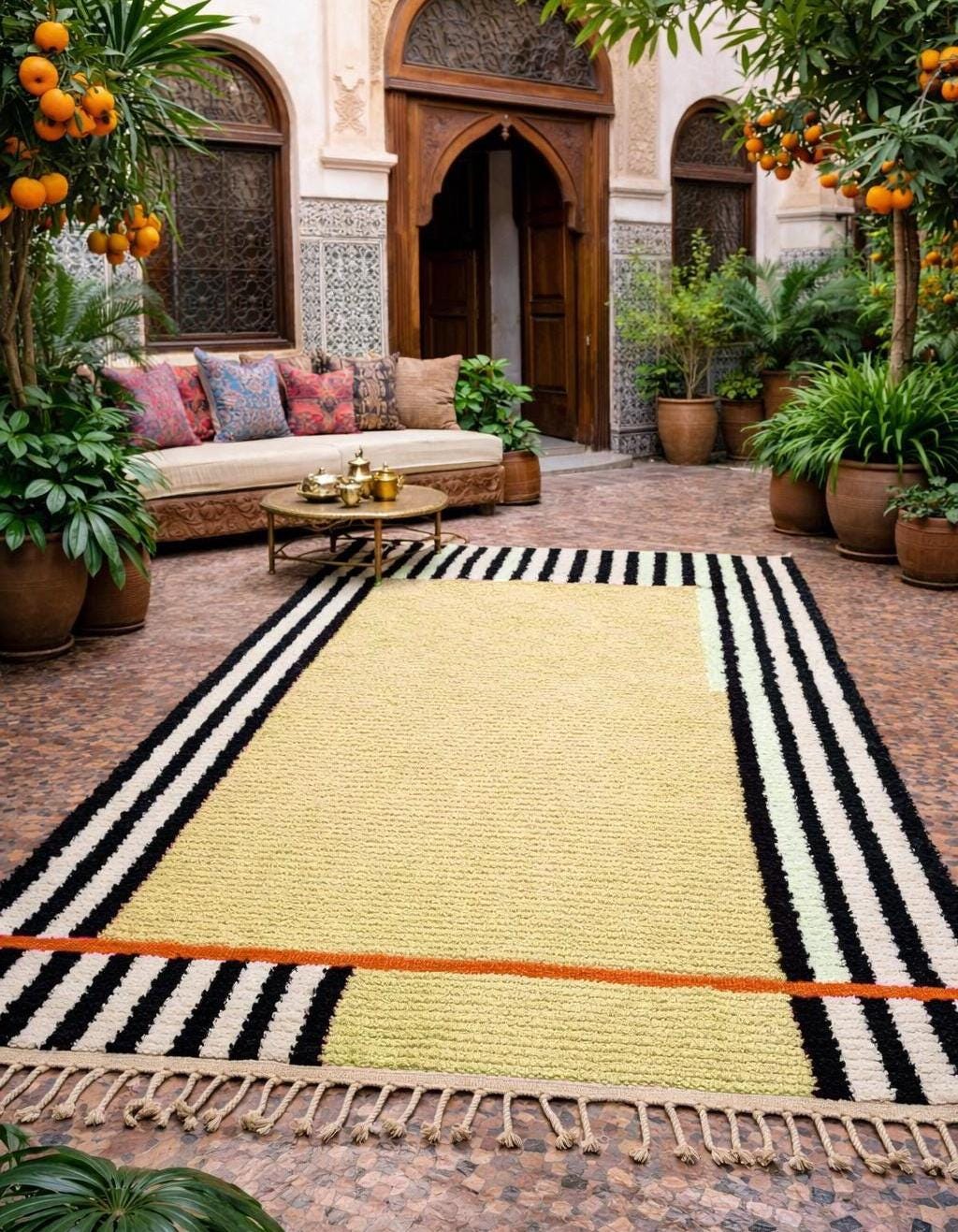 Beni Ourain Rugs – Classic ivory and black wool rugs, known for their thick pile and geometric simplicity.
