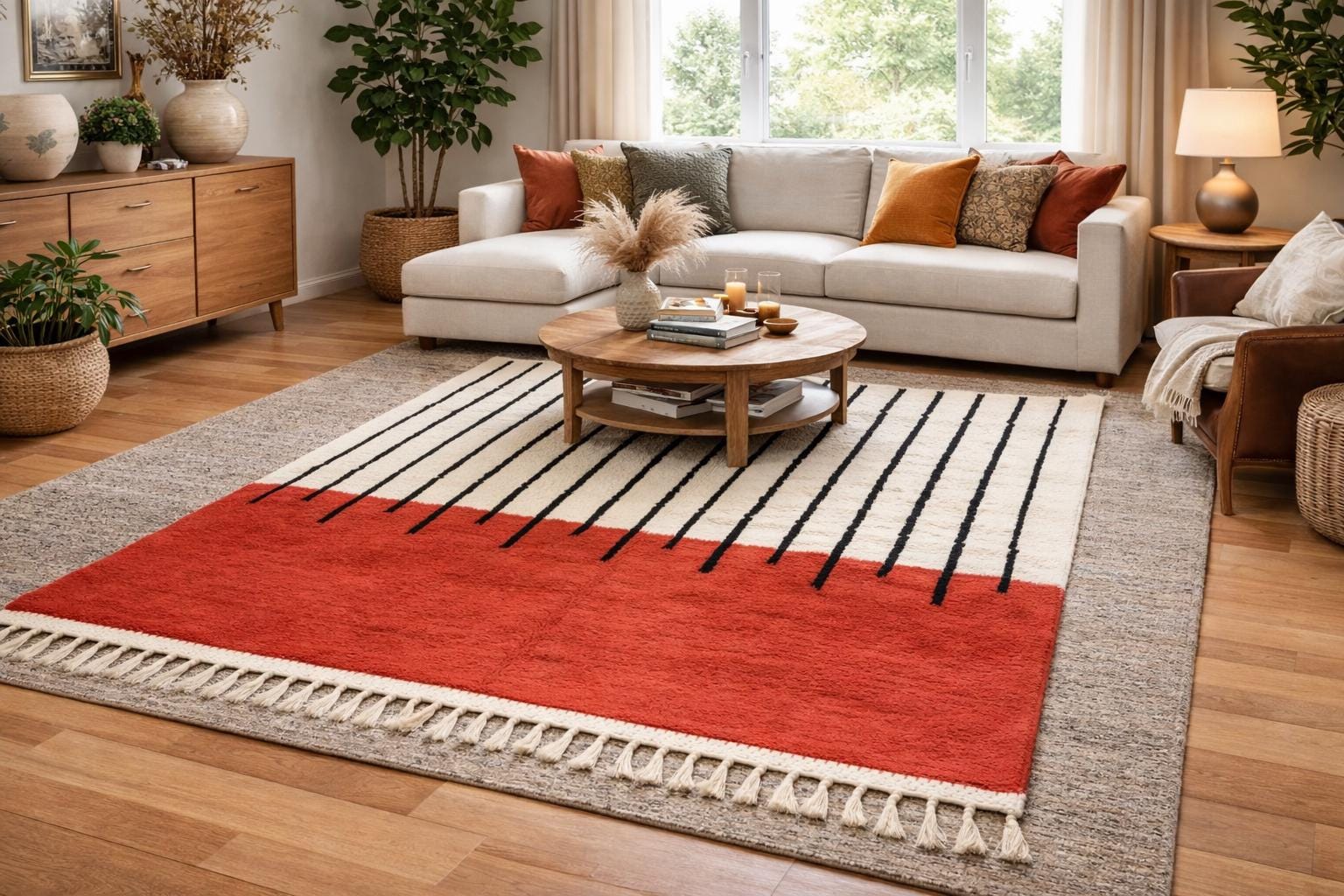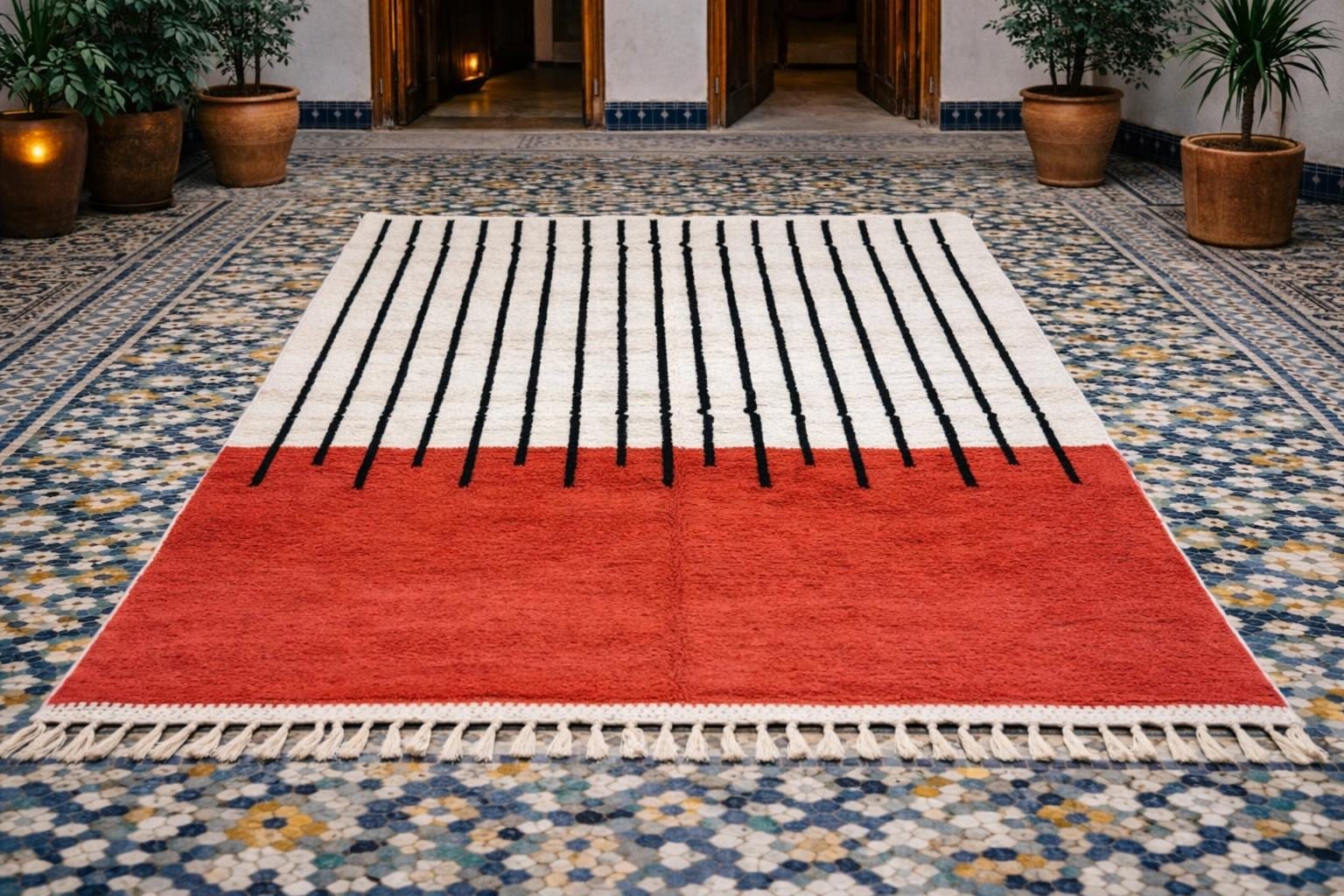 Beni Ourain Rugs – Classic ivory and black wool rugs, known for their thick pile and geometric simplicity.