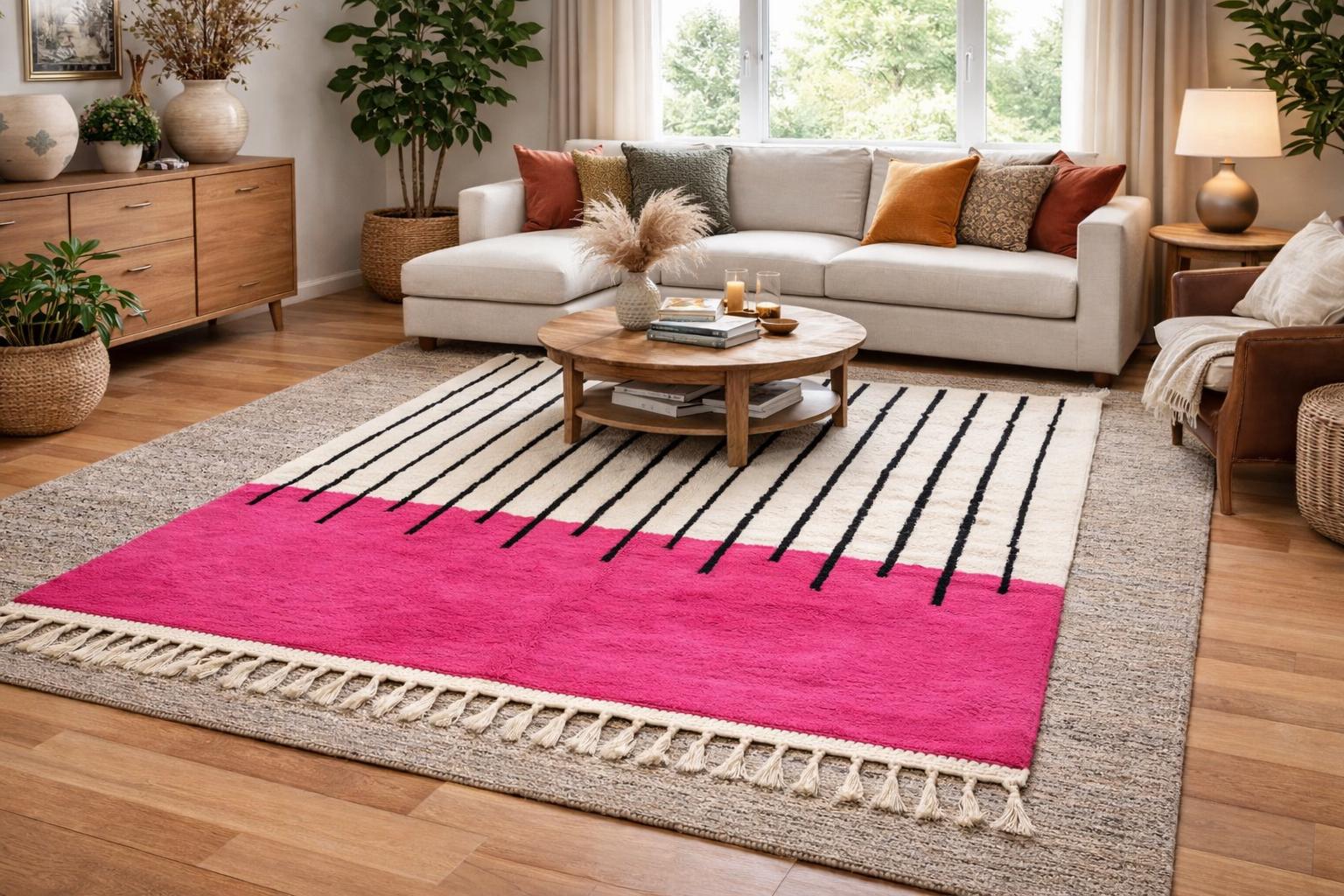 Boujad Rugs – Vintage-style rugs with bold pinks, reds, and oranges, offering vibrant personality.
