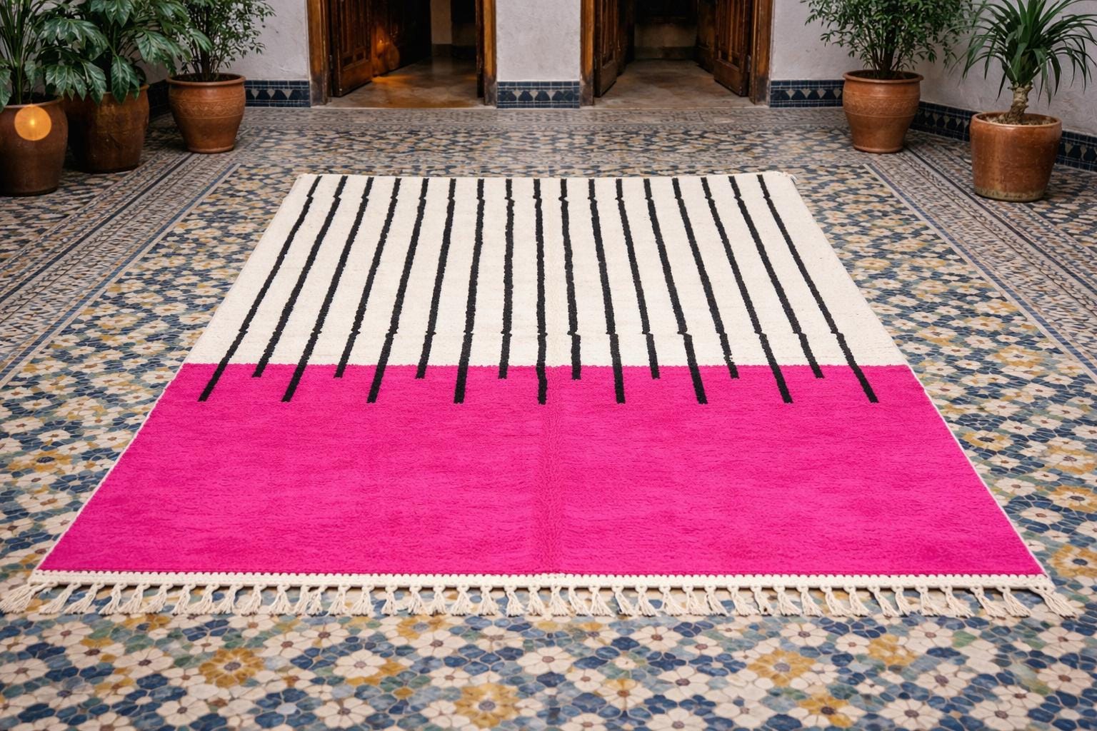 Beni Ourain Rugs – Classic ivory and black wool rugs, known for their thick pile and geometric simplicity.