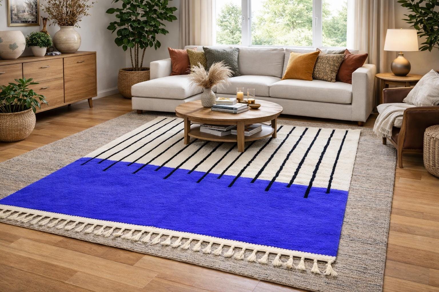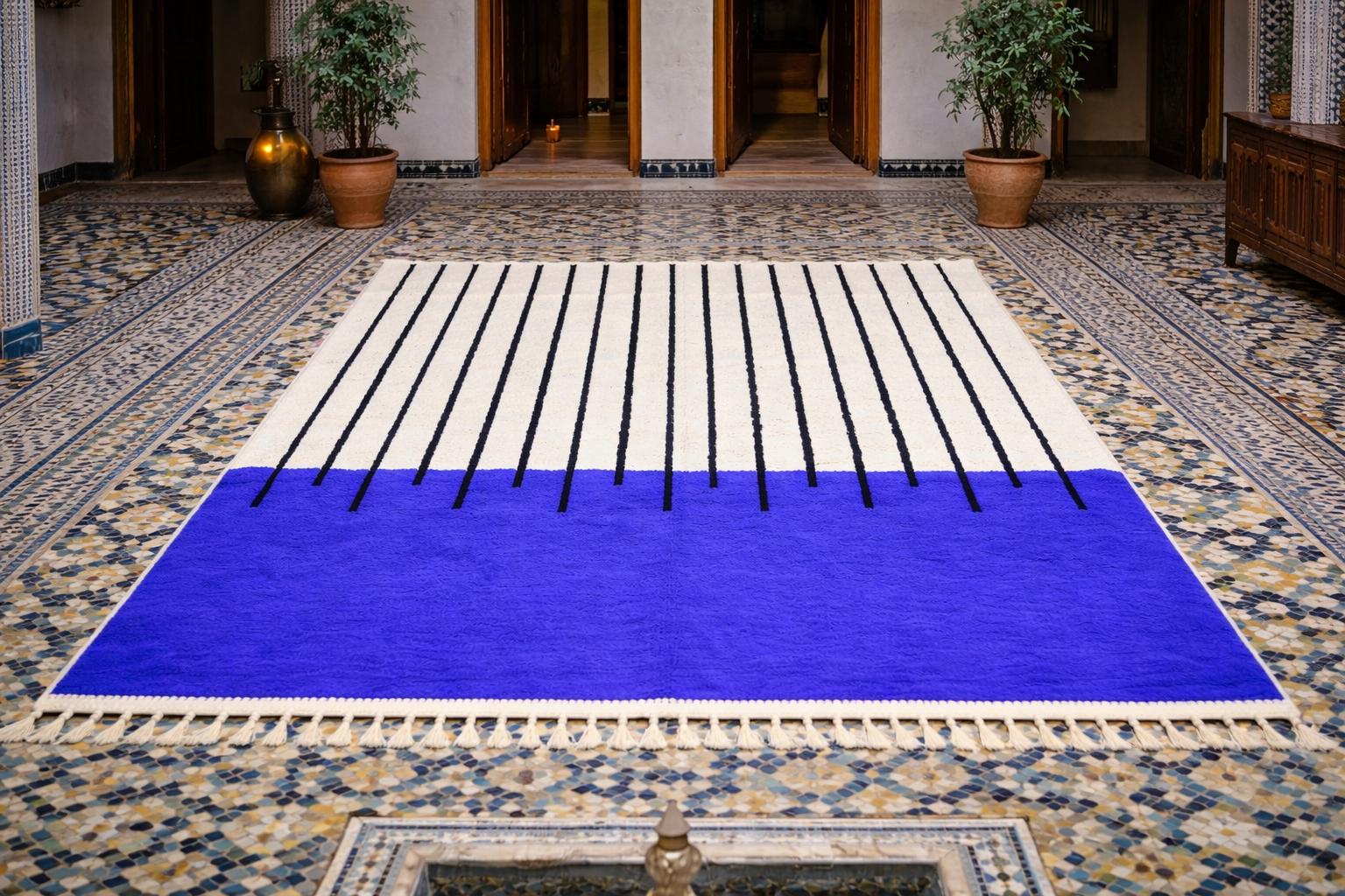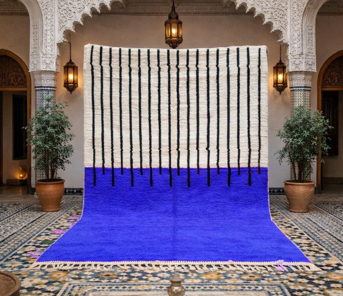 Beni Ourain Rugs – Classic ivory and black wool rugs, known for their thick pile and geometric simplicity.